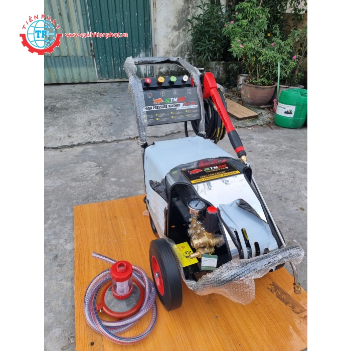• Máy rửa xe công nghiệp Jetman 3kW là dòng máy phun xịt cao áp mạnh mẽ, được thiết kế đặc biệt để đáp ứng nhu cầu sử dụng trong các tiệm rửa xe ô tô, xe tải, garage hay nhà xưởng. Với công suất 3.0kW và sử dụng pít-tông sứ cao cấp, máy không chỉ đảm bảo lực phun mạnh mà còn có độ bền vượt trội.